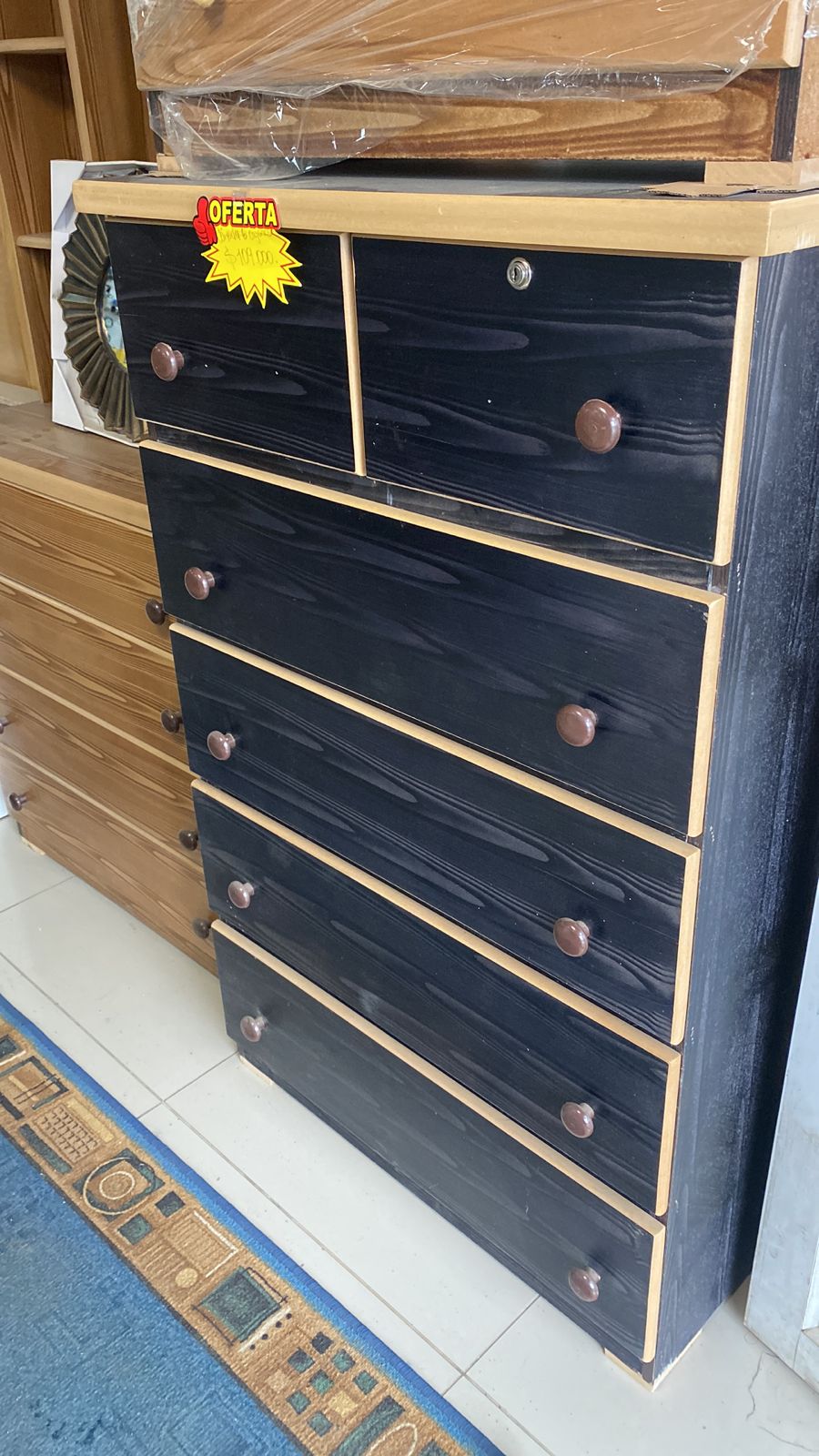 Cómoda color oscuro, con 4 cajones y dos cajones superiores.
